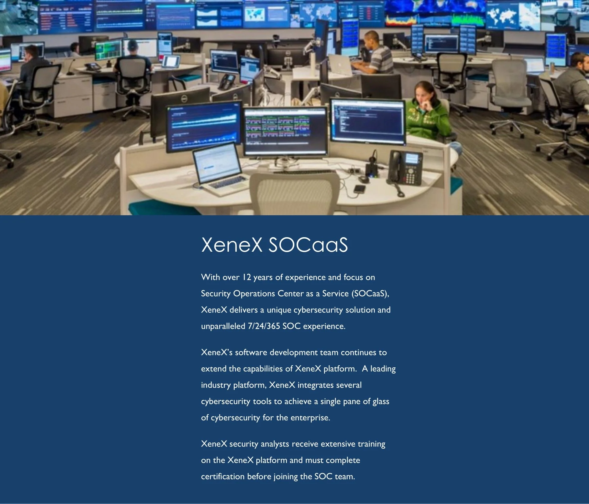 XeneX’s Security Operations Center-as-a-Service integrates virtually everything needed, “out of the box” including our powerful, proprietary XDR+ engine. This is a complete Cloud Security Operation Center (SOC) solution and an advanced global security team providing total peace-of-mind.